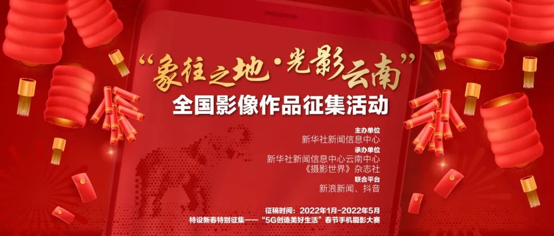 (一)“象往之地·光影云南”全国影像作品征集活动第二季之“象往的生活”篇,征稿时间为即日起至 2022 年 5 月 1 日。(二)新春特别主题—— “ 5G 创造美好生活”(仅限手机作品),征稿时间为即日起至 2022 年 3 月 2 日。(四)评选结果公布:2022 年 6 月至 7 月。