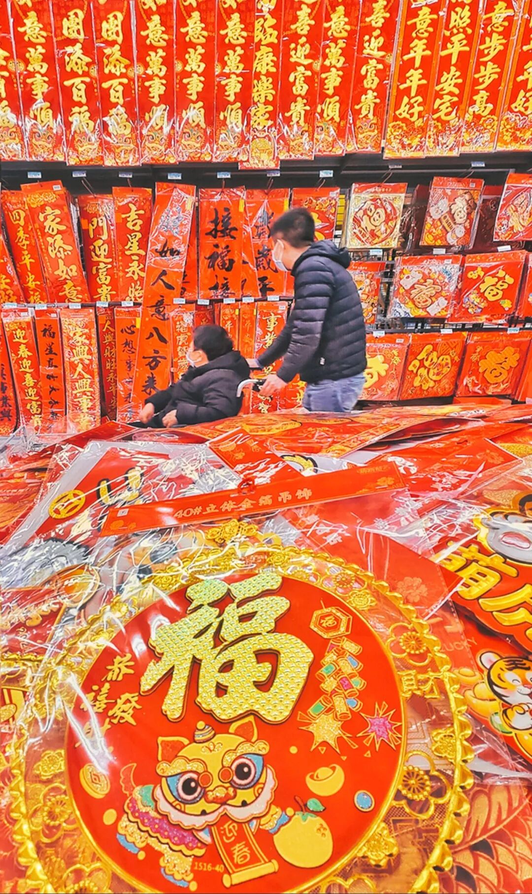 纳福,人们在商场选购心仪的春联。胡平华 摄VVV保山日报网_www.baoshandaily.cn