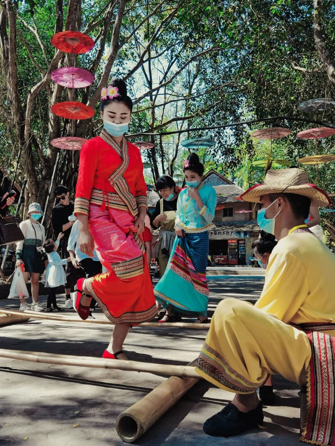 跳竹竿,云南傣族传统的跳竹竿,新年里傣族小姐姐带领大家一起跳。清风色友 摄VVV保山日报网_www.baoshandaily.cn