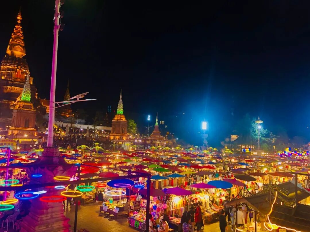 星光夜市,星光夜市每一个摊位都会撑起一把美丽的小伞,伞上挂着明亮的灯光,放眼望去就像星光一样。 高超群 摄VVV保山日报网_www.baoshandaily.cn