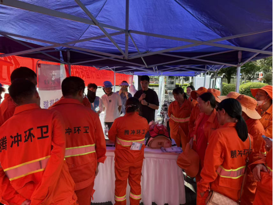一旁的急救技能教学区则成为现场的“生命课堂”。专业人员通过模型演示和真人讲解,手把手地教授大家中暑分级处理、心肺复苏以及海姆立克急救法等实用急救技能。从正确判断、黄金急救时间到规范操作步骤,工作人员讲解细致入微,耐心纠正参与者的每一个动作。围观群众聚精会神,积极提问,不少人还亲自上手操作,在专业指导下反复练习,确保掌握要领。
